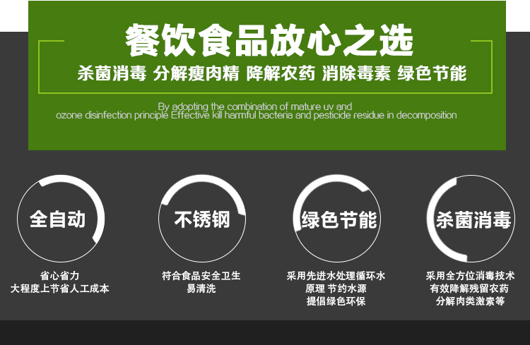 眾得力廚具為您提供食品消毒洗菜設(shè)備,本系列食品消毒洗菜機有1.2米和1.5米兩款,可定做其他規(guī)格食品消毒洗菜設(shè)備,本款為1500型豪華洗菜機,帶臭氧消毒,活性炭吸附,水泵高壓沖擊漩渦清洗,流水內(nèi)循環(huán),節(jié)約水源,清洗消毒一體,清洗效果好。