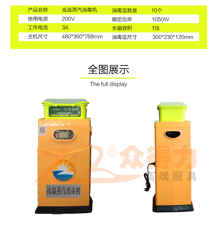 眾得力廚具為您提供主題餐廳流行消毒設(shè)備,小黃人蒸汽快速消毒機,菜籃子式消毒機,消毒完畢提提就給客戶了,多種組合,消毒看的到。衛(wèi)生高效!你家餐廳有配嗎?抓緊時間電話聯(lián)系18879770143 0797-8284441訂購!
