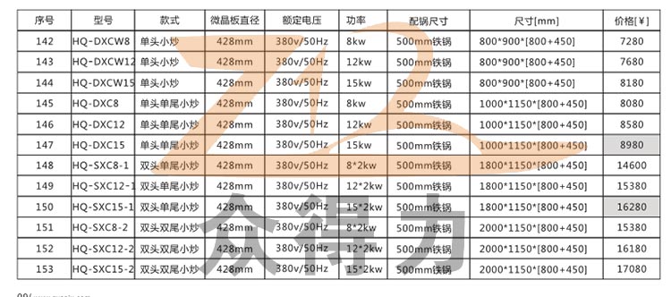 小炒爐系列詳細(xì)技術(shù)參數(shù)及統(tǒng)一報(bào)價(jià)