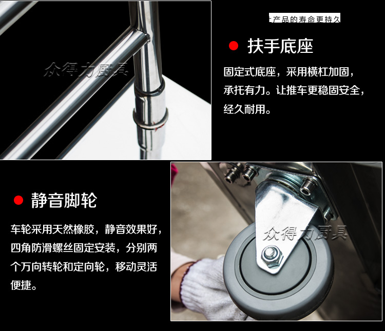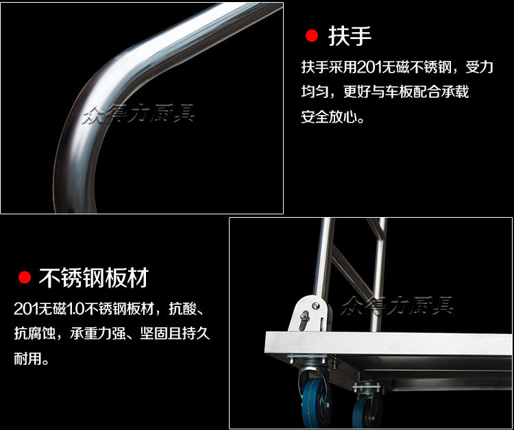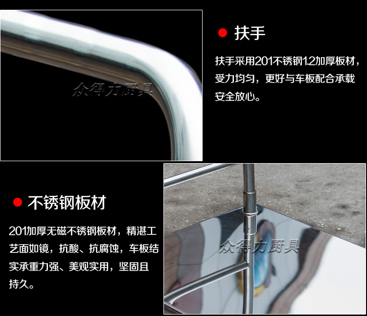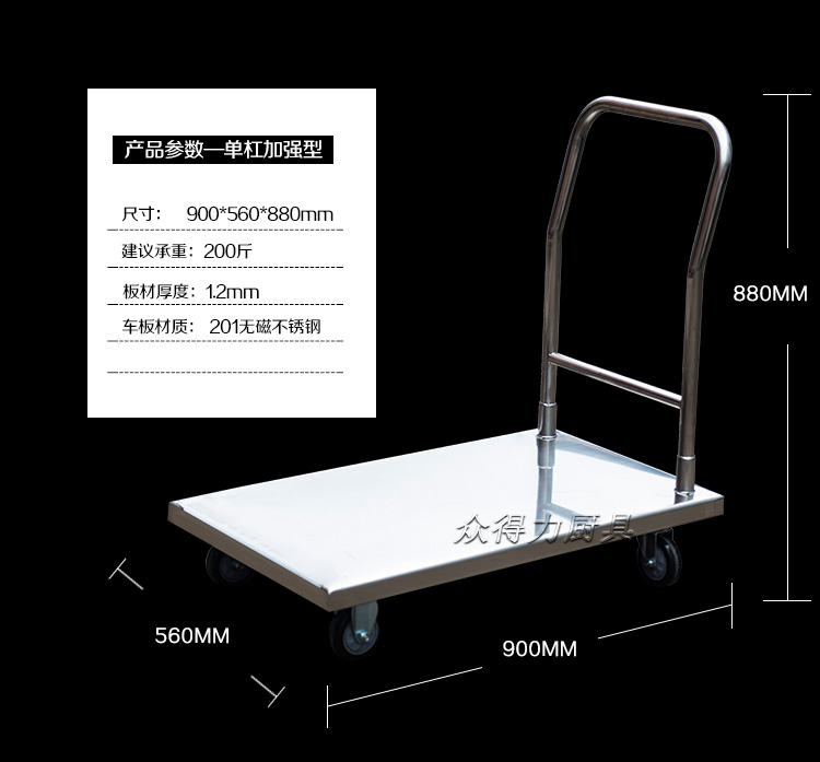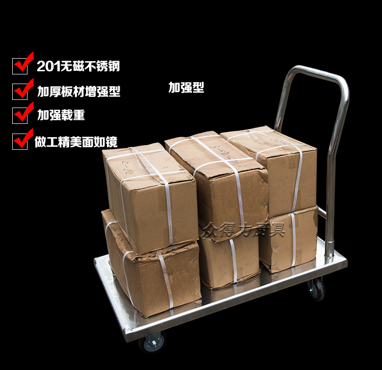 本推車有加強款,普通款,加強款推車采用201加厚不銹鋼板材設計,承載能力強,質量穩(wěn)定可靠。歡迎選購